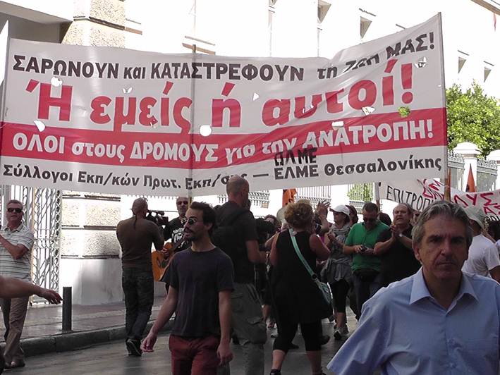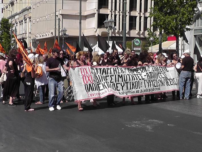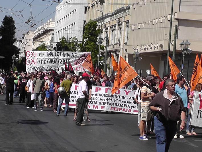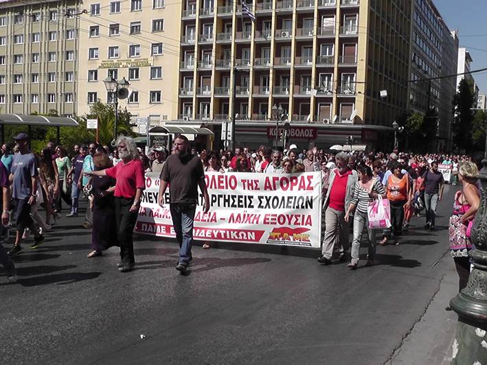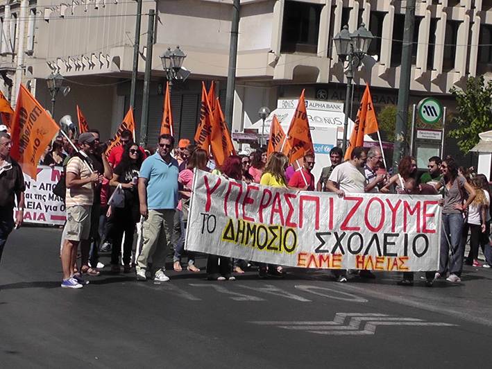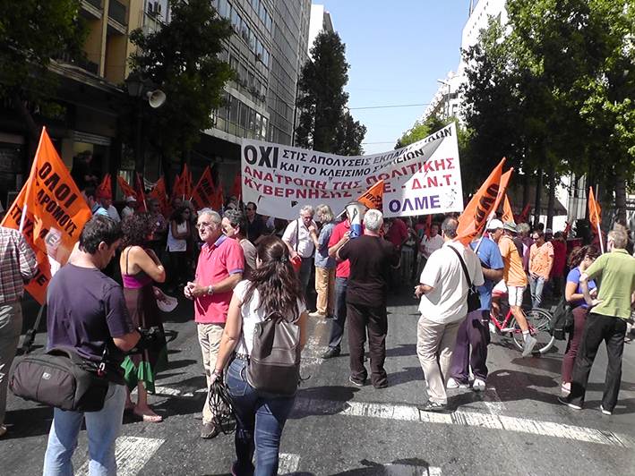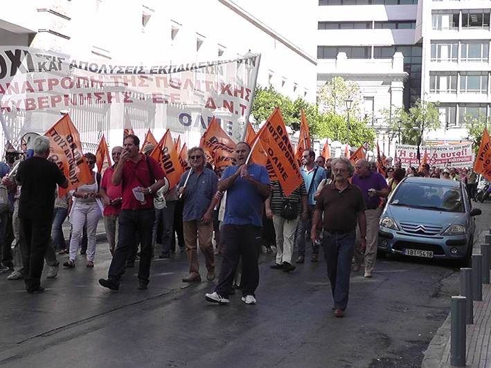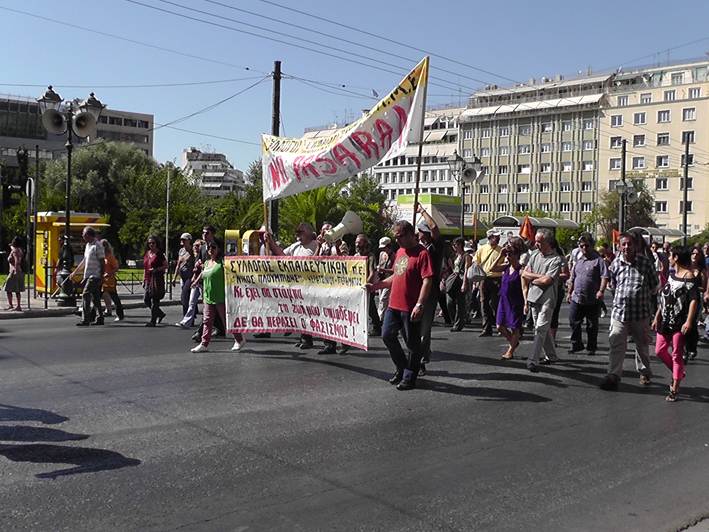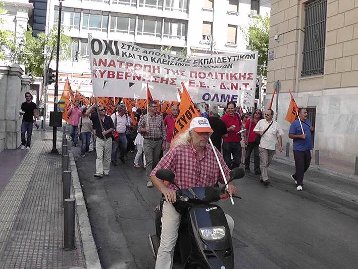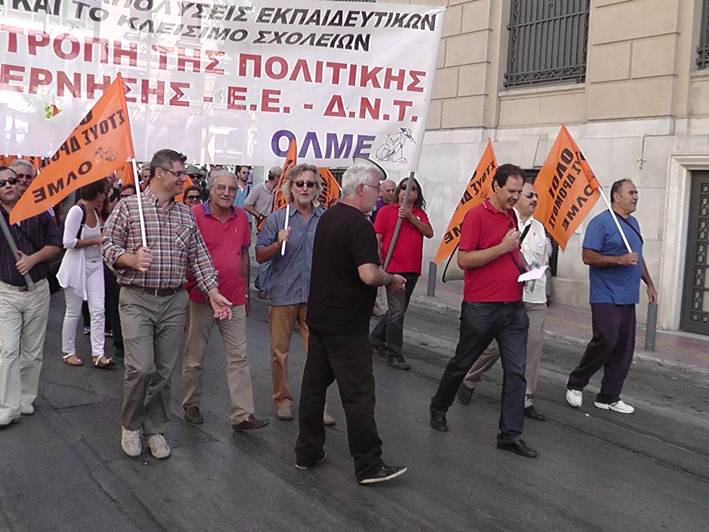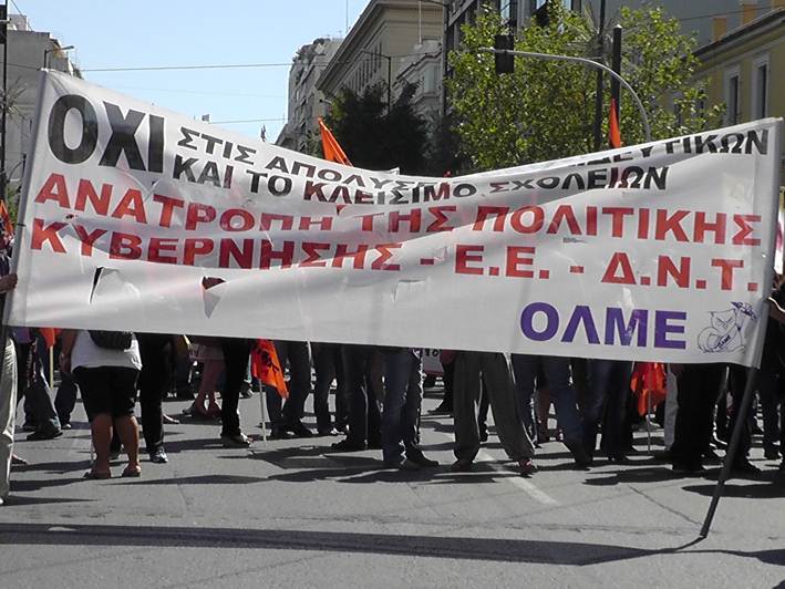 Το συλλαλητÞριο της ΟΛΜΕ Μαζικü το συλλαλητÞριο διοργανþθηκε σÞμερα στα Προπýλαια απü την ΟΛΜΕ, στο οποßο συμμετεßχαν χιλιÜδες εκπαιδευτικοß. ΜετÜ το συλλαλητÞριο ακολοýθησε η πορεßα που Ýφτασε στο Σýνταγμα. Οι καθηγητÝς δηλþνουν αποφασισμÝνοι üχι μüνο να σταματÞσουν τις απολýσεις στις τρεις βαθμßδες της εκπαßδευσης αλλÜ να σταματÞσουν τη διÜλυση της δημüσιας παιδεßας üπως καταγγÝλλουν. Νωρßτερα συγκεντρωση και πορεßα διοργανωσαν οι φοιτητÝς και οι εκπαιδευτικοß του ΠΑΜΕ