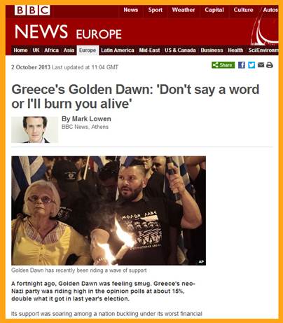 Το βρετανικü δßκτυο αποκαλýπτει üτι μÝλη της Χ.Α. ζητοýσαν αμοιβÞ προκειμÝνου να προχωρÞσουν σε Ýκνομες πρÜξεις και ξυλοδαρμοýς. Χαρακτηριστικüς εßναι ο τßτλος του δημοσιεýματος: «Αν πεις κουβÝντα, θα σε κÜψω ζωντανÞ». Το BBC συνομßλησε με μßα πρþην υποστηρßκτρια της ΧρυσÞς ΑυγÞς, η οποßα δÞλωσε üτι μετεßχε στις συναντÞσεις της, αφοý πρþτα εßχε δεχθεß σεξουαλικÞ παρενüχληση απü Ýναν Üνδρα. «Μüλις μπÞκα μÝσα, εßδα γκλομπς και ασπßδες. ¼λα τα μÝλη στÜθηκαν προσοχÞ üταν μπÞκε στην αßθουσα ο αρχηγüς», εßπε στον ρεπüρτερ. «Συζητοýσαν για ξυλοδαρμοýς ομοφυλüφιλων και σκουρüχρωμων ανθρþπων», συμπλÞρωσε. Στη συνÝχεια, ανÝφερε üτι «Ýνα μÝλος του κüμματος με επισκÝφτηκε και μου Ýκανε μια προσφορÜ. Θα μποροýσε να σπÜσει το χÝρι κÜποιου για 300 ευρþ, να βÜλει φωτιÜ σε Ýνα αυτοκßνητο για 1.000 ευρþ. Να στεßλει κÜποιον στο νοσοκομεßο για Ýναν μÞνα για 1.500 ευρþ». Η ßδια του εßπε üτι δεν επιθυμοýσε τßποτα απü αυτÜ και σταμÜτησε την επικοινωνßα με την οργÜνωση. «Αργüτερα, ο ßδιος επÝστρεψε και απεßλησε üτι σε περßπτωση που ποýμε το οτιδÞποτε για αυτÞν τη συζÞτηση, θα μας Ýκαιγε ζωντανοýς», εßπε. Στο ßδιο ρεπορτÜζ, το βρετανικü δßκτυο αναρωτιÝται για ποιον λüγο οι ΑρχÝς δεν Ýκαναν κÜτι νωρßτερα, εφüσον γνþριζαν για τη βßαιη δρÜση του κüμματος. ¼πως επισημαßνει το BBC, «μßα θεωρßα εßναι η φημολογοýμενη σχÝση με την Αστυνομßα. Στις τελευταßες εκλογÝς, προσωπικüτητες απü διÜφορες περιοχÝς της ΑθÞνας ανÝφεραν üτι Ýνας στους δýο αστυνομικοýς ψÞφισε ΧρυσÞ ΑυγÞ». ΔιαβÜστε ολüκληρο το Üρθρο του BBC στα αγγλικÜ πατþντας ΕΔΩ |