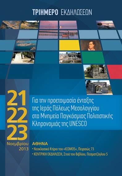 Στον Εκθεσιακü χþρο του κτηρßου του Ελληνικοý ICOMOS üπου φιλοξενεßται ο ¼μιλος για την UNESCO Πειραιþς και ΝÞσων στον Κεραμεικü (Πειραιþς 73, ΣτÜση Μετρü: Κεραμεικüς, ΣτÜση Ηλ. Σταθμοý: Θησεßο), θα πραγματοποιηθοýν οι εκδηλþσεις των 2 πρþτων ημερþν και θα ακολουθÞσει το συνÝδριο, την Τρßτη μÝρα, που θα πραγματοποιηθεß το ΣÜββατο 23 Νοεμβρßου και þρα 18:30 στη ΣτοÜ του Βιβλßου, Πεσμαζüγλου 5. ΑναλυτικÜ το πρüγραμμα των τριÞμερων εκδηλþσεων Ýχει ως εξÞς: