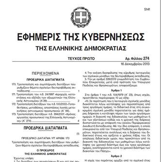 Α. Σε περßπτωση που η λειτουργßα σχολικÞς μονÜδας διακüπτεται λüγω κατÜληψης για περισσüτερες απü τρεις εργÜσιμες ημÝρες, το διδακτικü Ýτος στη συγκεκριμÝνη σχολικÞ μονÜδα παρατεßνεται για üσες ημÝρες διÞρκησε η κατÜληψη πÝραν των τριþν εργÜσιμων ημερþν. Β. Η διακοπÞ της διδασκαλßας των μαθημÜτων Þ και των εξετÜσεων καθþς και η χρονικÞ της διÜρκεια διαπιστþνεται με απüφαση του οικεßου Περιφερειακοý ΔιευθυντÞ Εκπαßδευσης. Γ. Με την ßδια απüφαση, η οποßα επικυρþνεται απü τον Υπουργü Παιδεßας και ΘρησκευμÜτων, παρατεßνεται αναλüγως και η διÜρκεια του διδακτικοý Ýτους και ορßζεται ο χρüνος λÞξης του. Δ. Οι απþλειες διδακτικþν ωρþν, που προκýπτουν απü τη διακοπÞ της διδασκαλßας των μαθημÜτων λüγω κατÜληψης για χρονικü διÜστημα Ýως και τρεις εργÜσιμες ημÝρες, αναπληρþνονται κατÜ το χρονικü διÜστημα των διακοπþν του ΠÜσχα. Η ισχýς του Προεδρικοý ΔιατÜγματος αρχßζει απü το τρÝχον σχολικü Ýτος 2013−2014. |