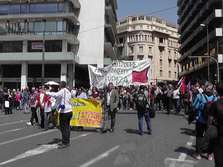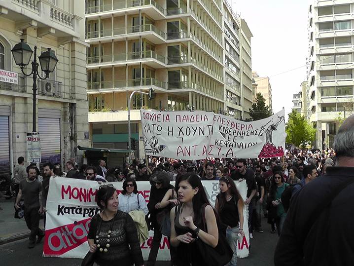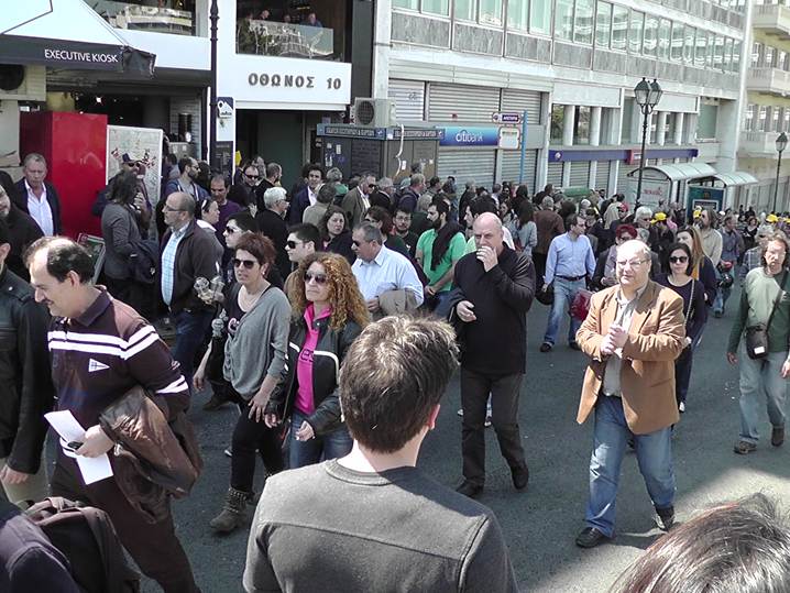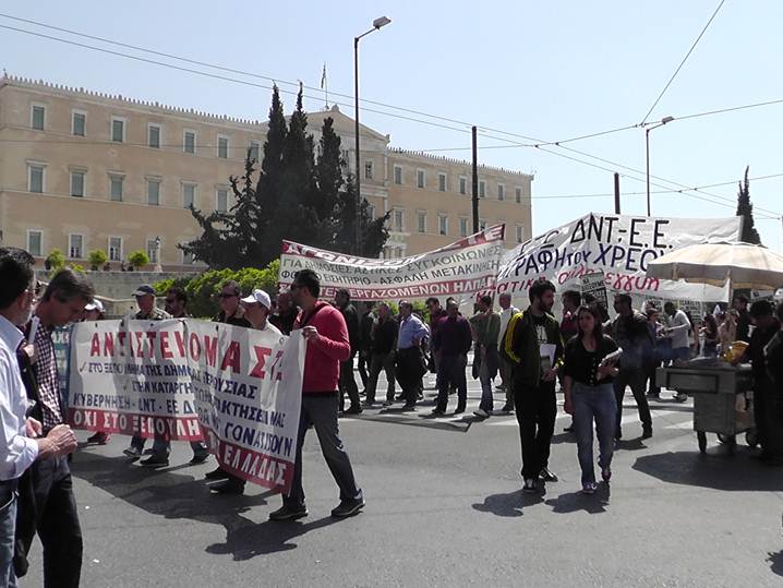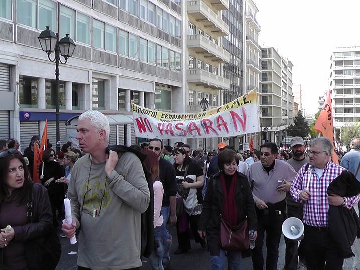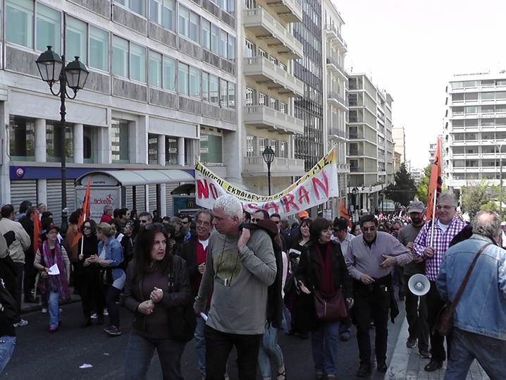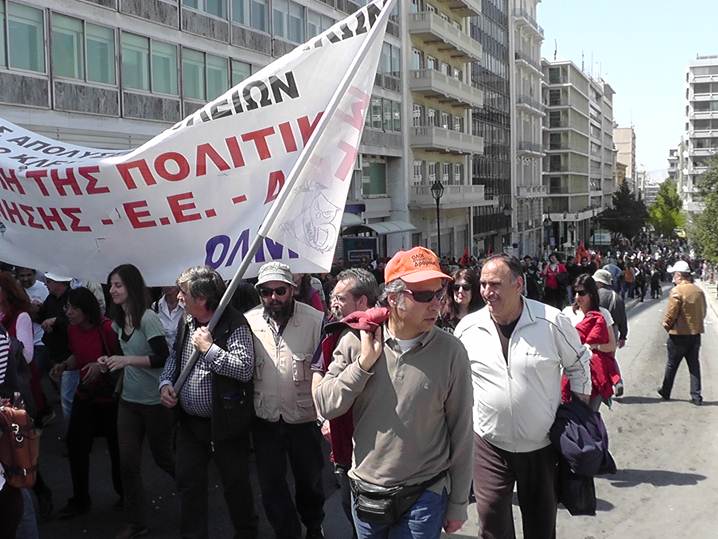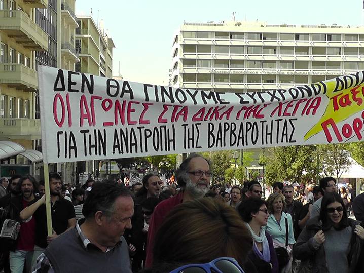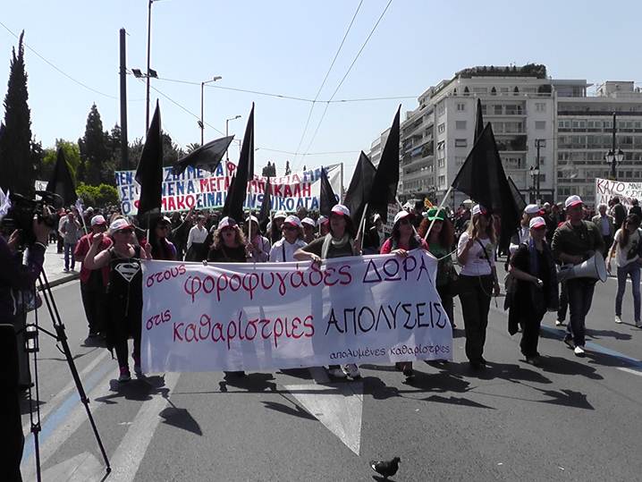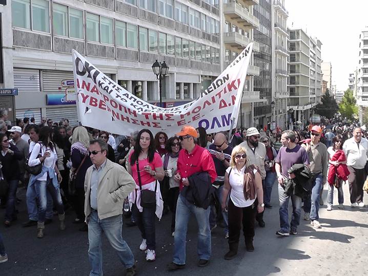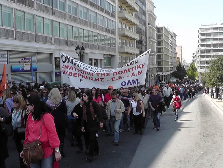 Τα συνδικάτα διαμαρτύρονται κατά των απολύσεων στο δημόσιο τομέα, την εφαρμογή του μέτρου της διαθεσιμότητας και των ιδιωτικοποιήσεων, ενώ ζητούν μέτρα προστασίας των «δημόσιων κοινωνικών αγαθών και υπηρεσιών» και «άμεσα στήριξη των ασφαλιστικών ταμείων». Ζητούν, επίσης, τη διαγραφή του χρέους, την προστασία της μητρότητας και των εργασιακών κεκτημένων. Ακολουθεί φωτογραφικό υλικό