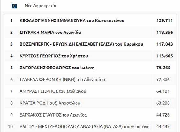 Ν.Δ. (5) και εκλÝγονται: O Μανþλης ΚεφαλογιÜννης, η Μαρßα ΣπυρÜκη, η Ελßζα Βüζεμπεργκ, ο Γιþργος Κýρτσος και ο ΘοδωρÞς ΖαγορÜκης.