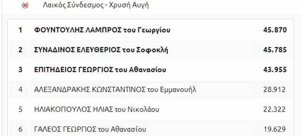 ΧρυσÞ ΑυγÞ (3) και εκλÝγονται: Ο ΛÜμπρος Φουντοýλης, ο ΛευτÝρης Συναδινüς, και ο Γιþργος ΕπιτÞδειος.