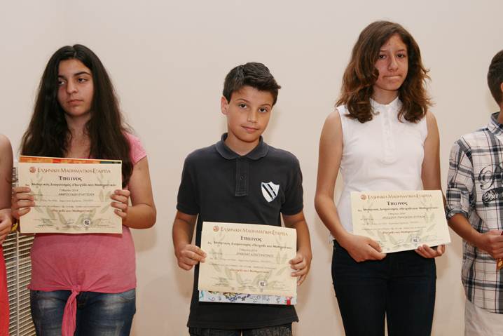 Η Ýκπληξη απü τους μικροýς Μια τις σημαντικüτερες στιγμÝς της βρÜβευσης Þταν üταν βραβεýτηκαν απü τον πρüεδρο της ΕΜΕ κ. ΔημÜκο, εκτüς σειρÜς, δυο μαθητÝς της Β’ τÜξης του Δημοτικοý. Ναι, καλÜ διαβÜσατε, της Β’ τÜξης του Δημοτικοý, οι οποßοι διαγωνßστηκαν κανονικÜ και αρßστευσαν διαγωνιζüμενοι μαζß με τους συμμαθητÝς τους της ΣΤ’ των σχολεßων τους στα θÝματα της ΣΤ’ τÜξης. Ο Ýνας εßναι μαθητÞς του 4ου Δημοτικοý Σχολεßου Χαλανδρßου και ο Üλλος 1ου Δημοτικοý Σχολεßου Αμαρουσßου.
