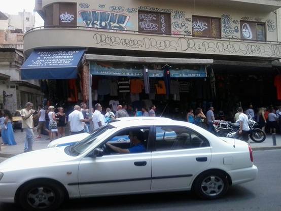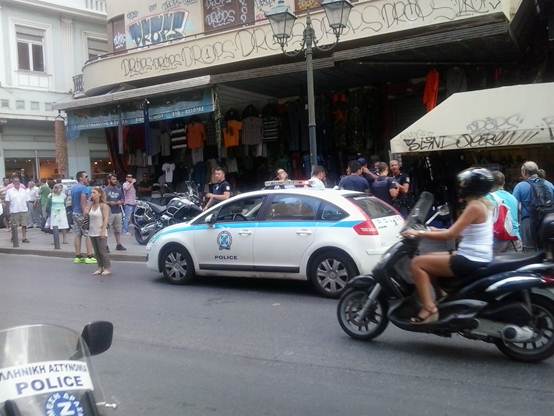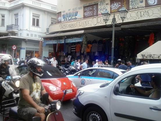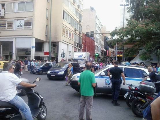 ΜπροστÜ απü την εßσοδο του ΜΕΤΡΟ εßναι τρεις αστυνομικοß της ομÜδας ΔΙΑΣ, ο τÝταρτος λεßπει και κÜποια στιγμÞ τους πλησιÜζει μια κοπÝλα, που διακρßνεις εýκολα τον τρüμο στο πρüσωπü της. ΠλησιÜζω και ÜθελÜ μου και ακοýω να τους λÝει üτι στο απÝναντι μαγαζß, στου Δραγουμανιþτη που διαθÝτει εßδη ταξιδßου, εßναι Ýνας τýπος με üπλο. Τüτε οι τρεις αστυνομικοß τρÝχουν ανÜμεσα στα διερχüμενα αυτοκßνητα της ΑθηνÜς και εισβÜλουν στο κατÜστημα. Σε λßγο βγÜζουν Ýνα τýπο Ýξω, ο οποßος πÜνω στην αναμπουμποýλα τους ξεφεýγει και κατευθýνεται προς την πλατεßα Μοναστηρακßου. «Τους ξÝφυγε το κλεφτρüνι σκÝφτομαι» και τη σκÝψη μου τη διακüπτη Ýνας πυροβολισμüς που Ýρχεται απü την πλατεßα. ΜÝχρι να φτÜσω στην πλατεßα ακοýγονται κι Üλλοι τÝσσερις – πÝντε πυροβολισμοß. ΚÜτι σοβαρü συμβαßνει σκÝφτομαι. Στην πλατεßα επικρατεß αναστÜτωση. Σε λßγο εμφανßζονται κι Üλλοι αστυνομικοß που τρÝχουν προς τα σουβλατζßδικα της οδοý Ερμοý. «ΜÜγκα μου, κυνηγÜνε το Μαζιþτη» ακοýω κÜποιον να λÝει. ΠλησιÜζω προς τα εκεß και τα βλÝπω Üδεια. Τüτε συνειδητοποιþ üτι αυτü που Üκουσα ως φÞμη, θα πρÝπει να εßναι αλÞθεια. ¹δη η πλατεßα Ýχει γεμßσει αστυνομικοýς. Στη διασταýρωση Ερμοý και ΑθηνÜς γßνεται πανζουρλισμüς. Γυρßζω πßσω και αποφασßζω να περÜσω ανÜμεσα στα σουβλατζßδικα. Στο δεýτερο αριστερÜ üπως ανεβαßνουμε για το Σýνταγμα βλÝπω αναποδογυρισμÝνα τραπÝζια και σε Ýνα σημεßο να υπÜρχουν και αßματα. ΣτÝκομαι και βλÝπω στο εσωτερικü του Ýνα νεαρü που το πüδι του εßναι γεμÜτο αßματα. «¸φαγε σφαßρα στο αστρÜγαλο» με ενημερþνει Ýνας απü τους υπαλλÞλους του καταστÞματος. Εßναι ο Ýνας απü τους δυο τραυματßας. ¹δη κÜποιος απü το κατÜστημα Ýχει καλÝσει το ασθενοφüρο. ΜετÜ απü λßγο βλÝπω κι Üλλο Ýναν νεαρü να τρÝχει σα χαμÝνος φορþντας τη μια σαγιονÜρα του και απü το πüδι τους, κÜτω απü το γüνατο, να Ýχει αßματα. Προφανþς θα πρÝπει να Þταν ο δεýτερος τραυματßας. Εκεß πλÝον μαθαßνω ο καταδιωκüμενος εßναι ο Νßκος Μαζιþτης και üτι τον εßχαν πια συλλÜβει οι αστυνομικοß στην οδü Μητροπüλεως στο ýψος της ΚαπνικαρÝας, αφοý πρþτα τον εßχαν τραυματßσει. Παντοý επικρατεß πανικüς και αναστÜτωση. ¸ξω απü κατÜστημα υπÜρχουν τρεις κÜλυκες απü πυροβüλο üπλο, αυτοýς μπüρεσα και εßδα. Ο Ýνας πÜνω σε Ýνα τραπÝζι, ο Üλλος σκεπασμÝνος με μια καρÝκλα και ο τρßτος καπακωμÝνος με Ýνα γυÜλινο σταχτοδοχεßο. Κατορθþνω και παßρνω μια φωτογραφßα του κÜλυκα που εßναι κÜτω απü την καρÝκλα. Ακοýγονται σειρÞνες, κüρνες, πανζουρλισμüς. Επικρατεß χÜος! «Ο δικüς μας τη γλßτωσε», ακοýω Ýναν αστυνομικü να λÝει σε Ýναν Üλλον, «την μια την Ýφαγε στο αλεξßσφαιρο αλλÜ η δεýτερη τον πÞρα στο πüδι και τον τραυμÜτισε». ΑναφÝρονταν στο τραυματßα αστυνομικü. Γýρισα πßσω προς την πλατεßα για να πÜω να κÜνω τις δουλειÝς μου. «ΣÞμερα εßχαμε Üγιο», σκÝφτηκα. Θα μποροýσαμε να θρηνÞσουμε θýματα, üπως εξελßχτηκαν τα γεγονüτα. Αφοý τελεßωσα τις δουλειÝς μου ανÝβηκα την Ερμοý. Στο ýψος της ΚαπνικαρÝας εßχαν üλα απολεστεß και εßχε αρχßσει τον Ýλεγχο η ΑντιτρομοκρατικÞ. Ακολουθεß φωτογραφικü υλικü