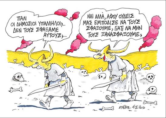 - Στη διεýρυνση της μισθολογικÞς διαφορÜς μεταξý των υπαλλÞλων Π.Ε. και Τ.Ε. και των υπüλοιπων Δ.Ε. και Υ.Ε. Στüχος εßναι να πριμοδοτηθοýν εκεßνοι που Ýχουν πανεπιστημιακÞ εκπαßδευση και να μειωθοýν οι αποδοχÝς των υπολοßπων υπαλλÞλων. Εφüσον προχωρÞσει κÜτι τÝτοιο, τüτε περßπου 250.000 εργαζüμενοι στον δημüσιο τομÝα θα δουν τις αποδοχÝς τους να αυξÜνονται, ενþ περßπου 150.000 δημüσιοι υπÜλληλοι θα υποστοýν νÝες μειþσεις.