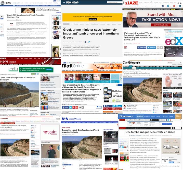 Απü το βρετανικü δßκτυο BBC, τη γαλλικÞ εφημερßδα Le Figaro, μÝχρι τη φλαμανδικÞ De Standaard και τους International Business Times, πολλÜ εßναι τα δημοσιεýματα που μιλοýν για τα ευρÞματα στον τÜφο της Αμφßπολης