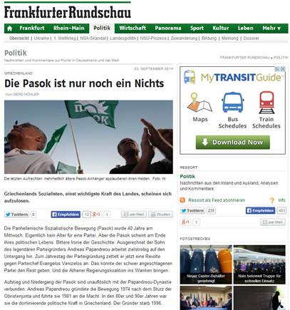 «Το ΠΑΣΟΚ εßναι πλÝον Ýνα τßποτα» εßναι ο τßτλος με τον οποßο επιγρÜφει ρεπορτÜζ της η Frankfurter Rundschau.