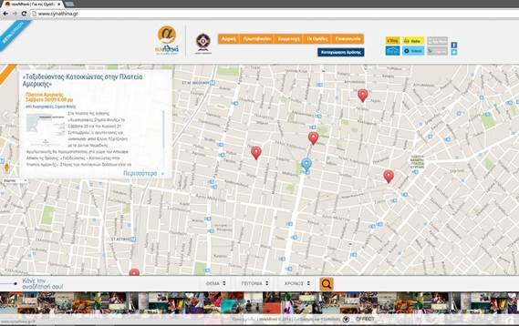 ΜÜλιστα στην πλατφüρμα http://www.synathina.gr φιλοξενεß Ýναν χÜρτη με τις δρÜσεις που πραγματοποιοýνται σε διÜφορες γειτονιÝς της ΑθÞνας, αλλÜ φιλοξενεß και μια αναλυτικÞ κατηγοριοποßηση για τις διαφορετικÝς δραστηριüτητες: