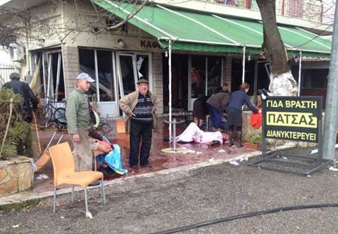 Σýμφωνα με πληροφορßες, απü την Ýκρηξη της φιÜλης του υγραερßου και το ωστικü κýμα που ακολοýθησε, Ýσπασαν τα τζÜμια του καφενεßου, ενþ κÜποιοι θαμþνες πετÜχτηκαν μακριÜ απü τη θÝση τους.