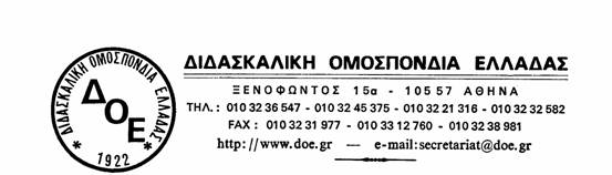 Κοιν.: Συλλόγους Εκπ/κών Π.Ε. και Δ.Ε.