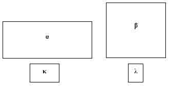 Οι παρακάτω επιφάνειες α και β μετρήθηκαν με μονάδες μέτρησης κ και λ αντίστοιχα, όπου κ = 2λ. Η επιφάνεια α με μονάδα μέτρησης το κ είχε εμβαδόν 6 (α=6κ) και η επιφάνεια β με μονάδα μέτρησης το λ είχε εμβαδόν 12 (β=12λ).