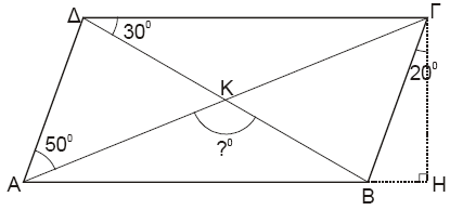 7. Αν στο παραλληλόγραμμο ΑΒΓΔ του σχήματος η γωνία ΔΑΚ είναι 500, η γωνία ΚΔΓ είναι 300, η γωνία ΓΗΒ είναι 900 και η γωνία ΒΓΗ είναι 200,