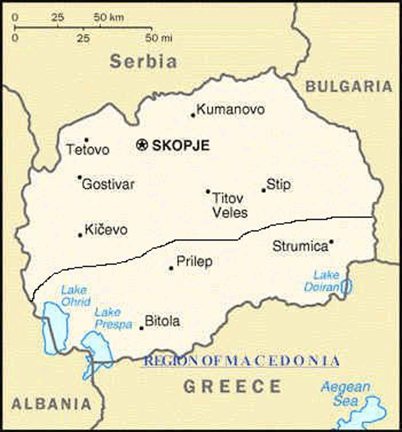 Ο χάρτης της Πρώην Γιουγκοσλαβική Δημοκρατία της Μακεδονίας (FYROM)