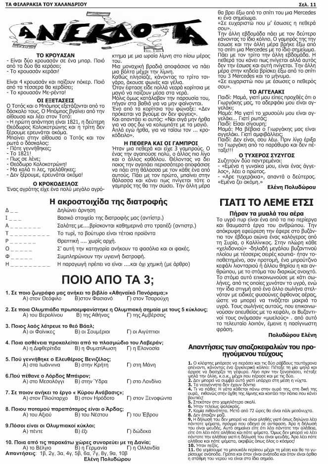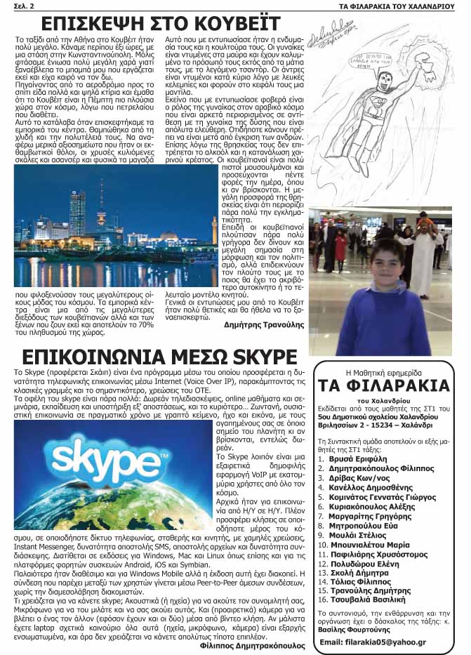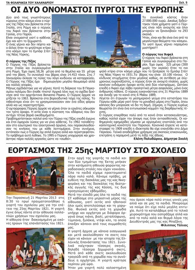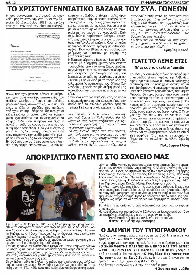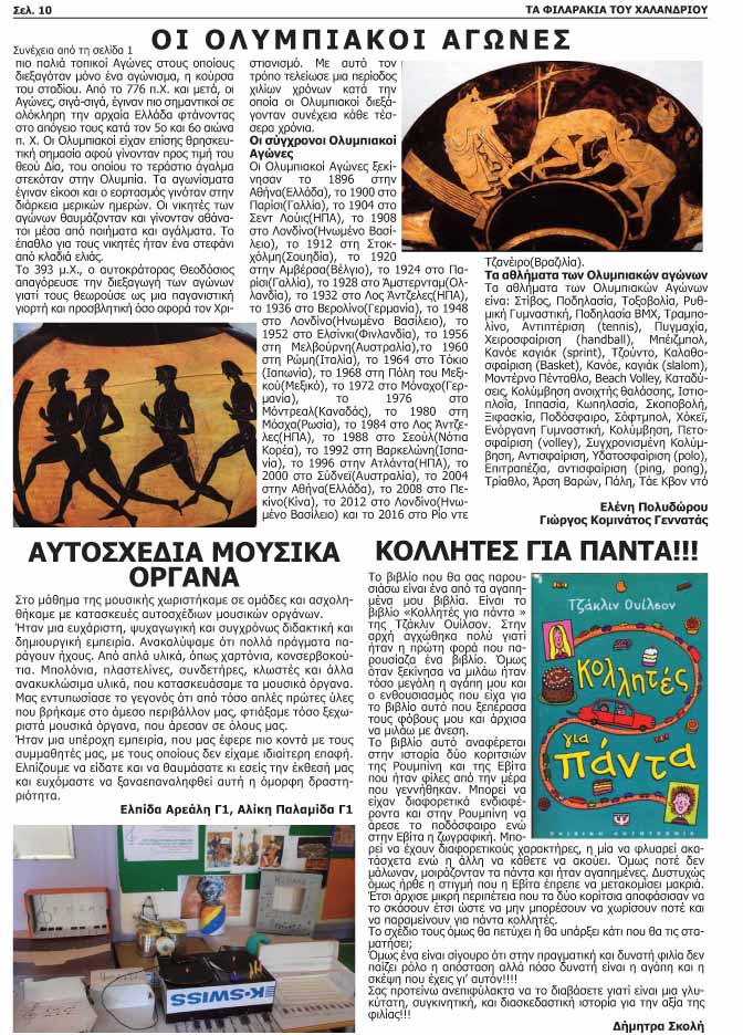 Μαθητική Εφημερίδα ΤΑ ΦΙΛΑΡΑΚΙΑ ΤΟΥ ΧΑΛΑΝΔΡΙΟΥ