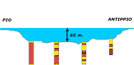 χαλυβδοσωλήνες διαμέτρου 2 μέτρων και μήκους 25 έως 30 μέτρων που εμπήγνυνται σε αποστάσεις 7 μέτρων μεταξύ τους. Στη θέση των τριών από τα τέσσερα βάθρα τοποθετούνται 150 με 200 τέτοιοι σωλήνες. Το τμήμα τους που προεξέχει από τον πυθμένα καλύπτεται από μια επιμελημένα ισοπεδωμένη στρώση αμμοχάλικου, πάχους 3 μέτρων.