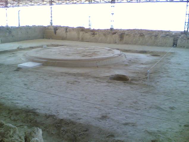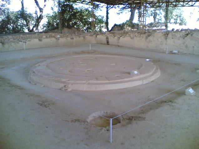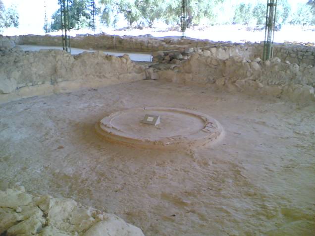 Η εστία του ανακτόρου, που είναι η μεγαλύτερη σε διάμετρο απ' όλα τα μυκηναϊκά ανάκτορα
