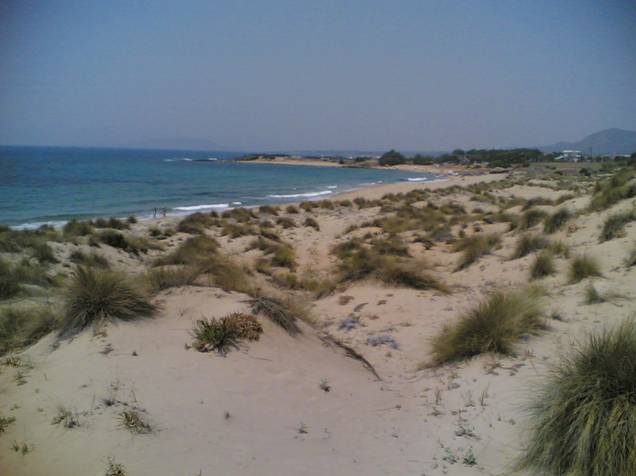 Αμμοθίνες και πανοραμική άποψη της παραλίας Γλυφαδάκι στο Πετροχώρι