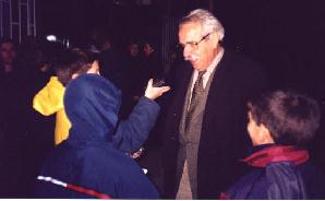 Στέλιος: Σας άρεσε κ. Πρόεδρε η γιορτή μας; Μπούρας: Ήταν πάρα πολύ ωραία και πολύ συγκινητική. Χάρηκα πάρα πολύ από τον τρόπο που απέδωσαν τα θέματα τα παιδιά όλα. Παναγιώτης: Στείλτε μέσα από τις εφημερίδα μας τις ευχές σας για το 2001. Μπούρας: Για το 2001 εύχομαι σε όλα τα παιδιά καλή πρόοδο. Ειρήνη σε όλο τον κόσμο και αγάπη και υγεία, το σπουδαιότερο απ' όλα. Στέλιος: κα Διευθύντρια, σας άρεσε η γιορτή μας. Παπαδοπούλου: Πάρα πολύ. Ήταν φοβερή η προσπάθεια και παρά πολύ ωραίο το αποτέλεσμα και Μπράβο σε όλους. Μάρκελλος: Σας παρακαλούμε να στείλετε μια ευχή, μέσα από την εφημερίδα μας για τις γιορτές. Παπαδοπούλου: Να περάσετε όμορφα, χαρούμενα και ξένοιαστε Χριστούγεννα. Κυβέλη: Κύριε Σύμβουλε, τι έχετε να δηλώσετε για τη γιορτή μας; Φράγκος: Να σας πω ένα μεγάλο - μεγάλο Μπράβο. Επίσης με την ευκαιρία να σας πω ένα μεγάλο ευχαριστώ για την εφημερίδα που μου στείλατε, αλλά και για την πρόσκληση που είχατε στείλει να παραβρεθώ στη Συντακτική Επιτροπή και να σας πω να συνεχίσετε αυτή την προσπάθεια που κάνετε με την εφημεριδούλα σας και