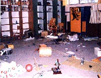 φρικτό!!! Στην αίθουσα της βιβλιοθήκης, δεν είχε τίποτα όρθιο. Όλα στο πάτωμα,