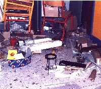 Στις 20 Αυγούστου το θέαμα που αντικρίσαμε, όταν μαζί με τους γονείς μας επισκεφθήκαμε το σχολείο μας, ήταν πολύ θλιβερό. Ίσως είμαστε πολύ μικροί για να περιγράψουμε τις καταστροφές, μα σίγουρα ξέρουμε ότι νιώσαμε πολύ άσχημα. Πόνος και θυμός έγιναν ένα μέσα μας. Η καρδιά μας πόνεσε σαν είδαμε την αίθουσα πολλαπλών χρήσεων καταστρεμμένη, το πιάνο ριγμένο στο πάτωμα, τα σκηνικά και τα τζάμια δεν υπήρχαν. Στην αίθουσα ζωγραφικής όλα, μπογιές, ζωγραφιές, θρανία, κατασκευές, σπασμένα και πεταγμένα στο πάτωμα. Το |