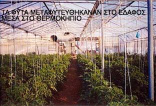μέσα στα θερμοκήπια υπάρχουν κάποια μηχανήματα τα αερόθερμα. Αυτά είναι κάτι σαν καλοριφέρ που στέλνουν ζεστό αέρα και προφυλάσσουν τα φυτά από τις παγωνιές του χειμώνα. Όταν, λοιπόν, τα φυτά μεγαλώσουν μέσα στα τελάρα, ξεχωρίζονται και μεταφυτεύονται ένα - ένα |