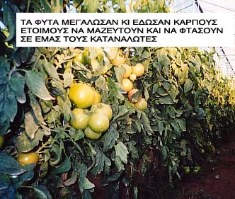 τεχνητά όπως παλιά με τις ορμόνες. Το άνθος αφού γονιμοποιηθεί σιγά - σιγά γίνεται καρπός. Πέφτουν τα πέταλα και ο καρπός αφού μεγαλώσει αρκετά και ωριμάσει θα μαζευτεί και θα πάει σε πάγκους, όπου θα γίνει η διαλογή του σε ποιότητες. Κάθε ποιότητα τοποθετείται σε τελάρα και διανέμεται στα μανάβικα και στις λαϊκές αγορές κι έτσι φτάνει στο καταναλωτή και τελειώνει αυτό το μεγάλο ταξίδι της ντομάτας. Δημοσθένης Κανελλόπουλος - Παρασκευάς Παπαχριστοφίλου - Γιούλα Χρονοπούλου Μονοθέσιο Δημοτικό Σχολείο Κορυφασίου - Μεσσηνίας |