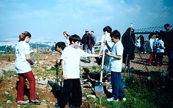 Έβλεπες παιδιά, που κρατούσαν στα χέρια τους μικρά δεντράκια, φτυάρια και τσάπες. Ένα ολόκληρο μελίσσι, για έναν ιερό σκοπό. Κάποια παιδιά έσκαβαν λακκούβες και ύστερα έβαζαν μέσα διαφόρων ειδών μικρά δεντράκια, που τα έπαιρναν από ένα φορτηγό. Το φορτηγό αυτό ήταν παρκαρισμένο λίγο πιο πέρα, αλλά οι υπεύθυνοι δεν έδιναν γρήγορα στα παιδιά τα δεντράκια και αυτό είχε ως αποτέλεσμα να δημιουργούνται μικροσυγκρούσεις ανάμεσα στα παιδιά. |