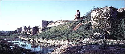 αιώνων απέκρουσαν τις επιθέσεις των Σλάβων (540, 550, 581), Περσών και Αβάρων (626), των Αράβων (669 - 679 και 717 - 718), των Βουλγάρων (813, 913 και 924) και Ρώσων (τέσσερις επιθέσεις μεταξύ 860 - 1043). Στη δεκαετία του 1980 έγινε προσπάθεια να φτιαχτεί το τείχος. Σ' αυτό βοήθησε και η UNESCO. Όμως η επέμβαση της δημοκρατικής αρχής της πόλης δημιούργησε προβλήματα στο σχέδιο. Έτσι σε πολλά σημεία τα τείχη δεν έχουν την πραγματική μορφή τους. Η πλήρης ανακατασκευή των τειχών δίνει στον επισκέπτη μια ξεκάθαρη άποψη της οχύρωσης, αλλά δεν ανταποκρίνεται στην ιστορική πραγματικότητα. ΤΟ ΦΡΟΥΡΙΟ ΤΗΣ ΑΝΑΤΟΛΗΣ Το φρούριο της Ανατολής Χισάρ, στο πιο στενό σημείο