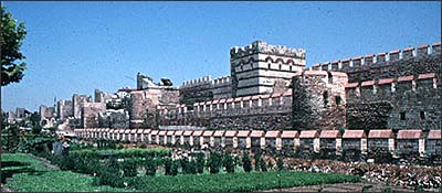 στρατηγική και εμπορική άποψη. Επίσης διαθέτει ένα καλό φυσικό λιμάνι. Στο παρελθόν γνώρισε πολλές πολιορκίες, αλλά έμεινε απόρθητη για σχεδόν 1000 χρόνια. Έπεσε για πρώτη φορά το 1204 στα χέρια των Σταυροφόρων. Οι Βυζαντινοί την ξαναπήραν το 1261. Το 1453 χάθηκε οριστικά, πέφτοντας στα χέρια των Οθωμανών. ΤΑ ΤΕΙΧΗ ΤΗΣ ΠΟΛΗΣ Η Κωνσταντινούπολη τον 13ο αιώνα ήταν περιτειχισμένη από ξηρά και θάλασσα. Είχαν γίνει δύο οχυρώσεις, η μία από το Μέγα Κωνσταντίνο και η άλλη από το Θεοδόσιο το Β΄. Η δεύτερη οχύρωση διατήρησε το άβατο της πόλης για 1000 χρόνια. Υπήρχαν δύο τείχη, τα χερσαία