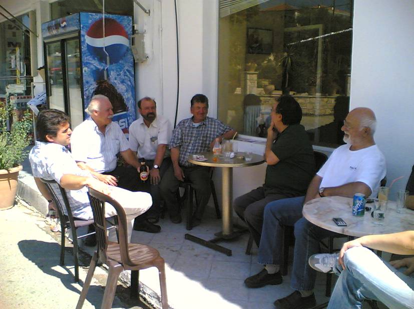Στο καφενείο (Δ. Αδαμόπουλος, Γ. Μυλωνάς, Β. Μυλωνάς, Σπ. Φλωρόπουλος, Κ. Λύτρας, Γ. Τύμπας)